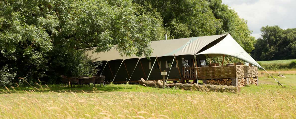Each of our canvas cottages has been lovingly designed with comfort in mind for a true luxury glamping experience; a leather sofa to curl up on, armchairs and the soul of the tent, a large wood burning fire with an oven and stove top for preparing delicious breakfasts, late suppers, and not forgetting the retro whistling kettle!